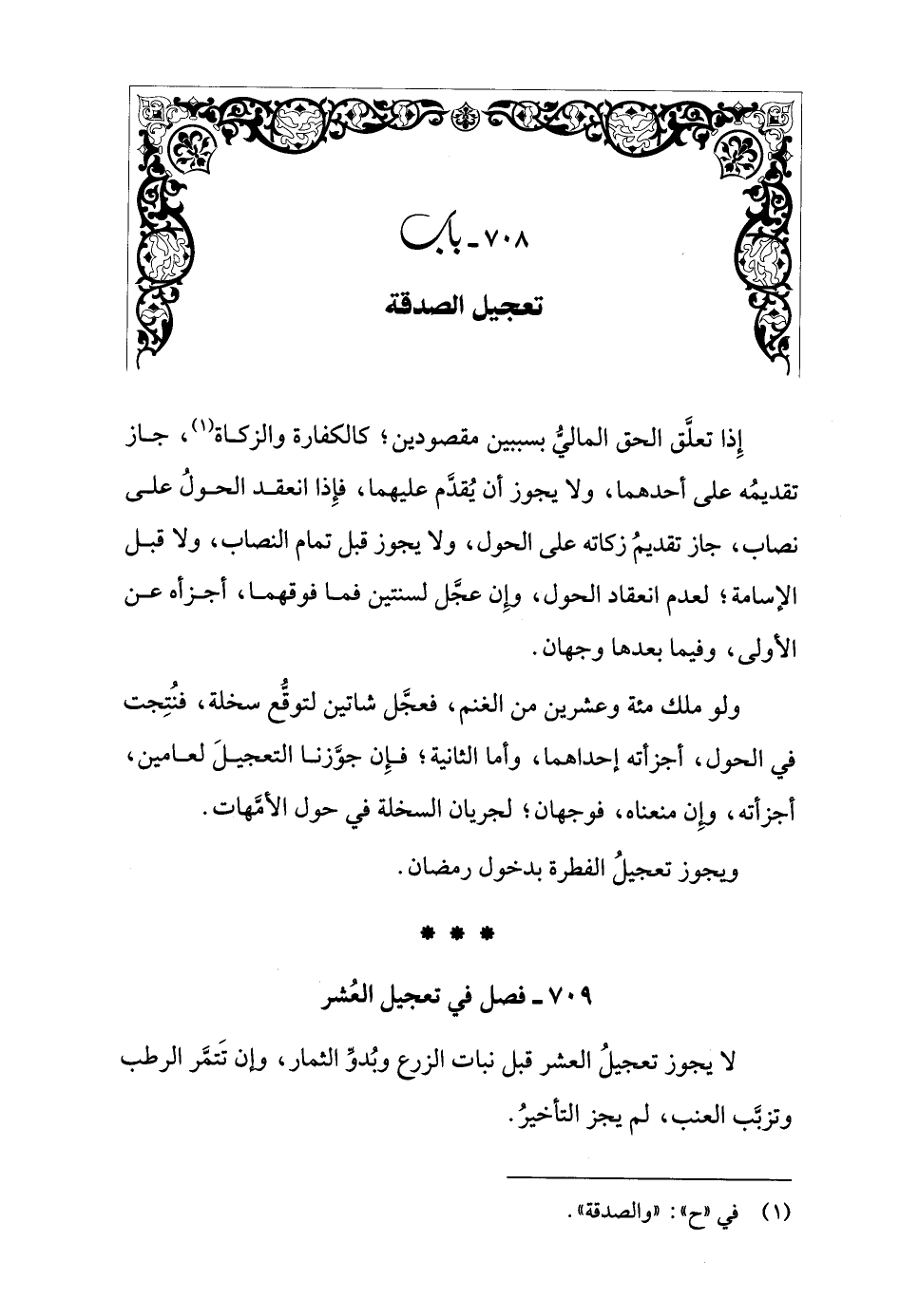 إِذا تعلَّق الحق الماليُّ بسببين مقصودين؛ كالكفارة والزكاة (¬1)، جاز تقديمُه على أحدهما، ولا يجوز أن يُقدَّم عليهما، فإِذا انعقد الحولُ على نصاب، جاز تقديمُ زكاته على الحول، ولا يجوز قبل تمام النصاب، ولا قبل الإسامة؛ لعدم انعقاد الحول، وإِن عجَّل لسنتين فما فوقهما، أجزأه عن الأولى، وفيما بعدها وجهان.
