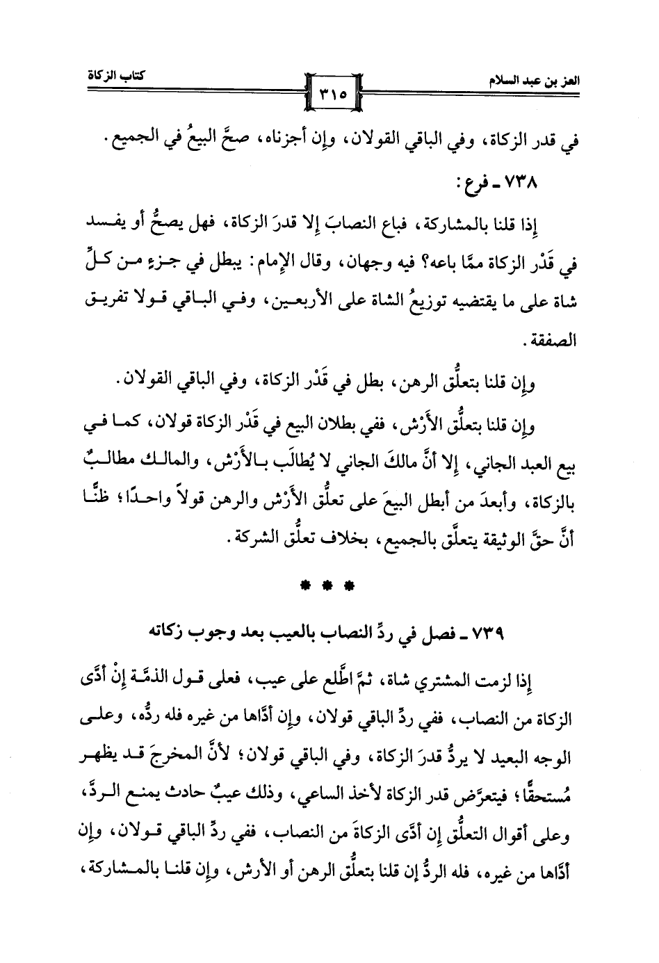 739 - فصل في ردِّ النصاب بالعيب بعد وجوب زكاته