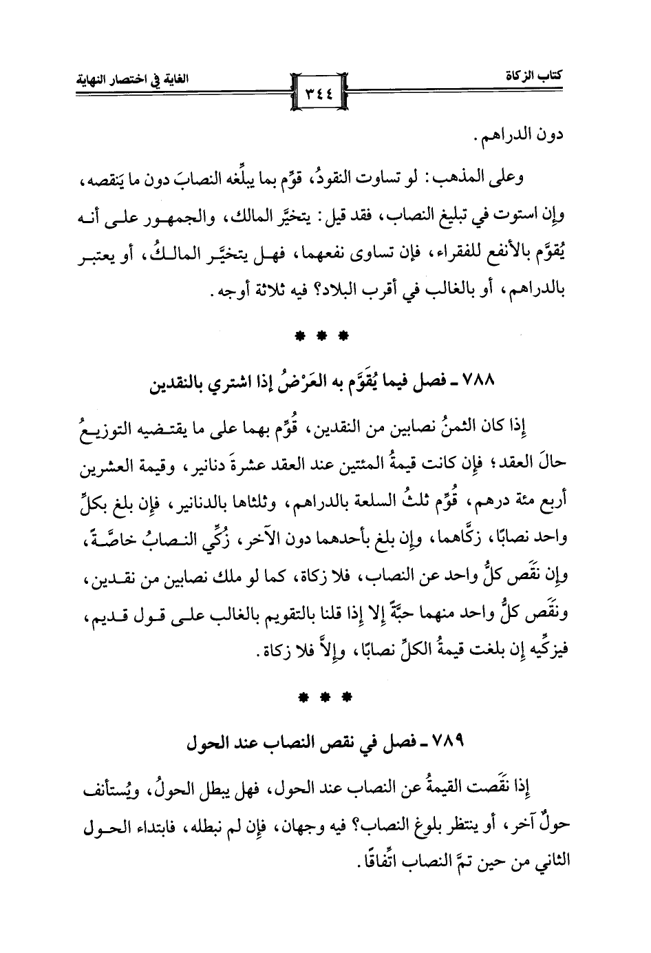 789 - فصل في نقص النصاب عند الحول