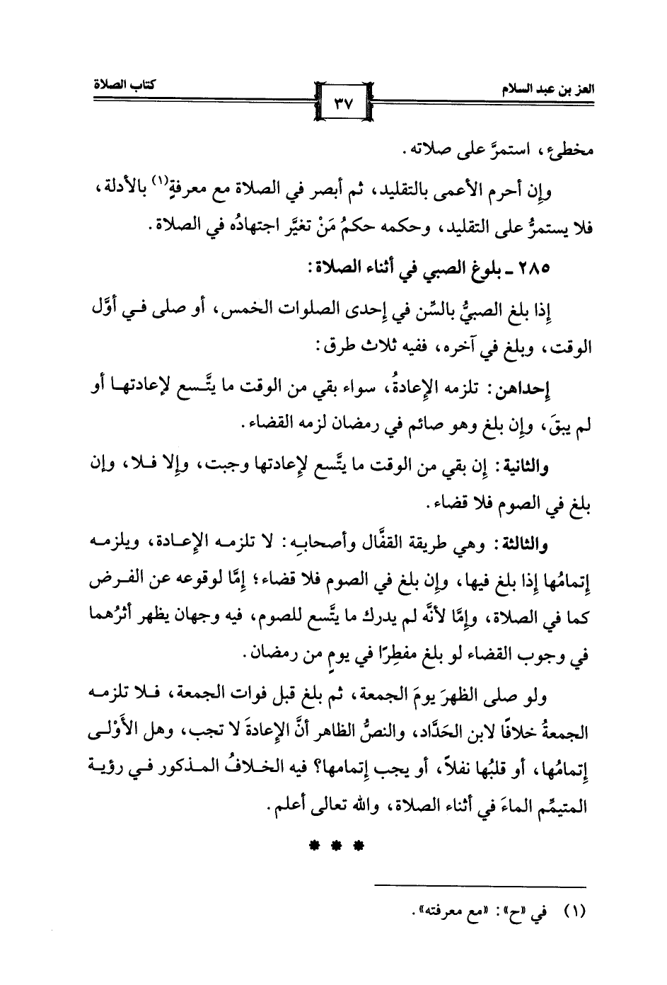 285 - بلوغ الصبي في أثناء الصلاة: