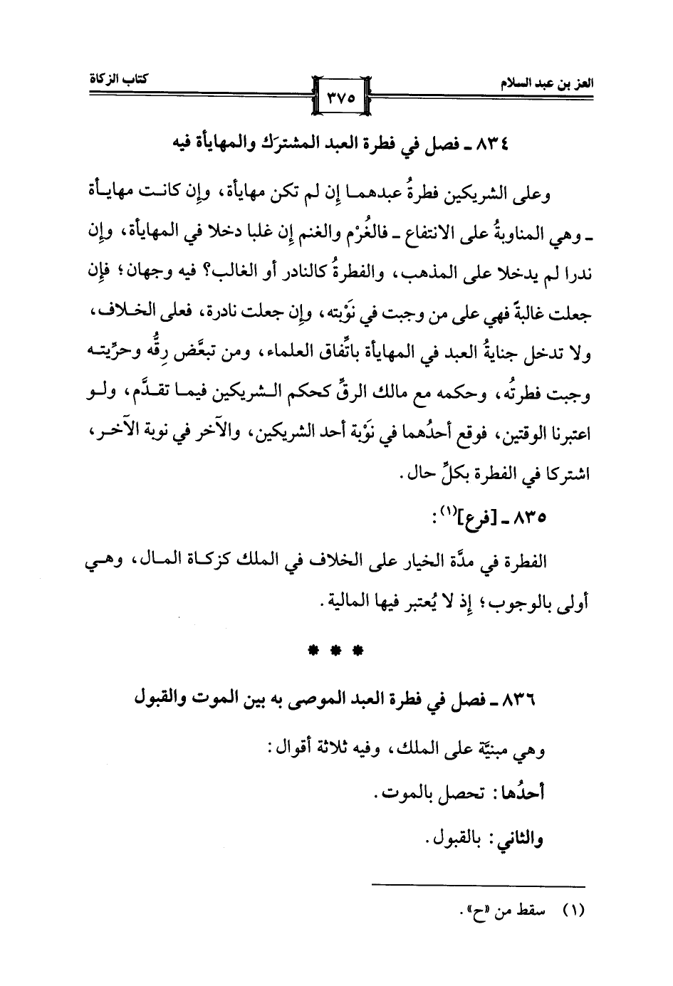 834 - فصل في فطرة العبد المشترَك والمهايأة فيه