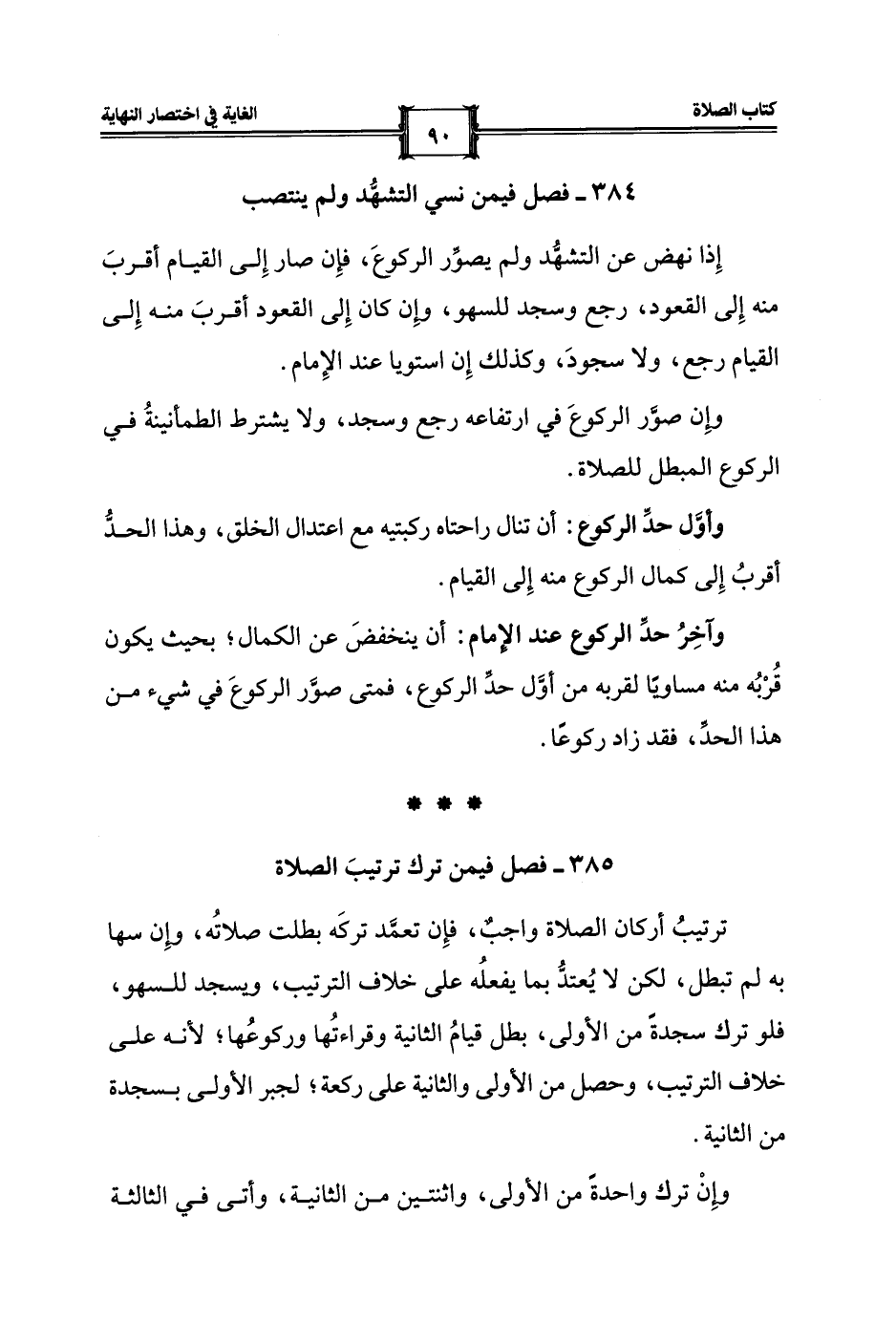385 - فصل فيمن ترك ترتيبَ الصلاة