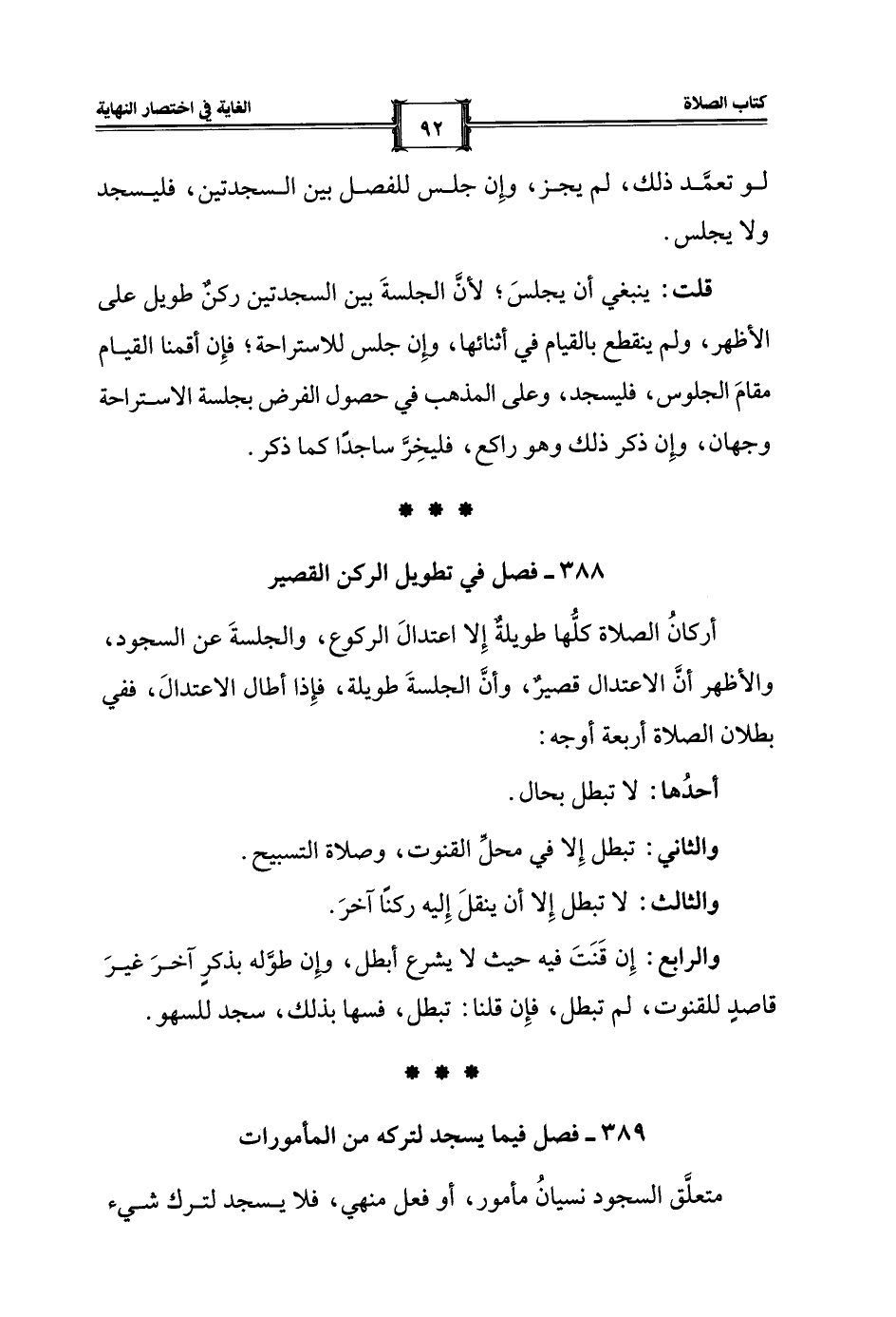 389 - فصل فيما يسجد لتركه من المأمورات