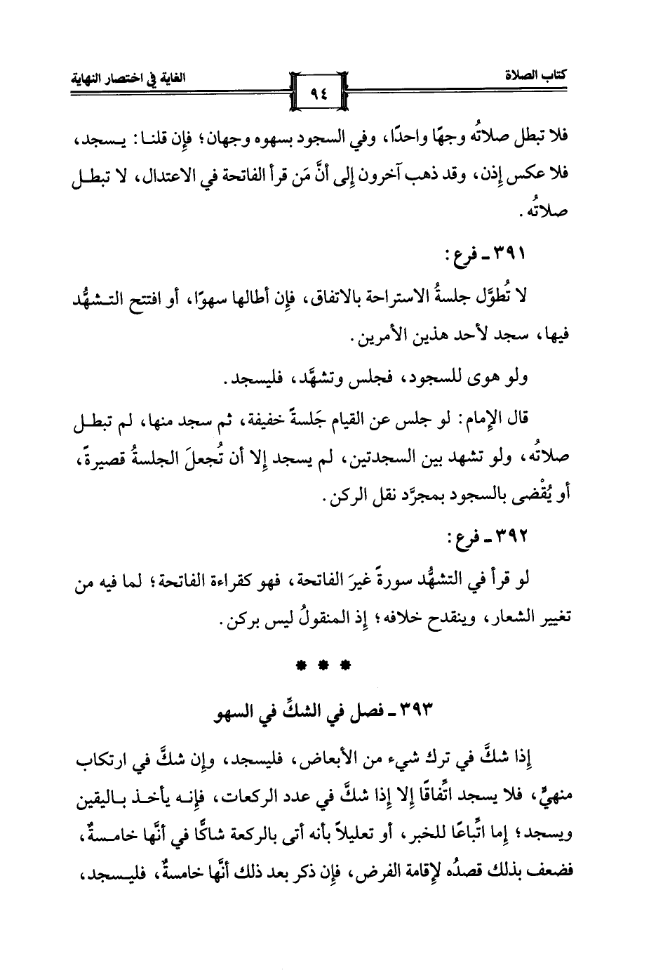 لا تُطوَّل جلسةُ الاستراحة بالاتفاق، فإِن أطالها سهوًا، أو افتتح التشهُّد فيها، سجد لأحد هذين الأمرين.