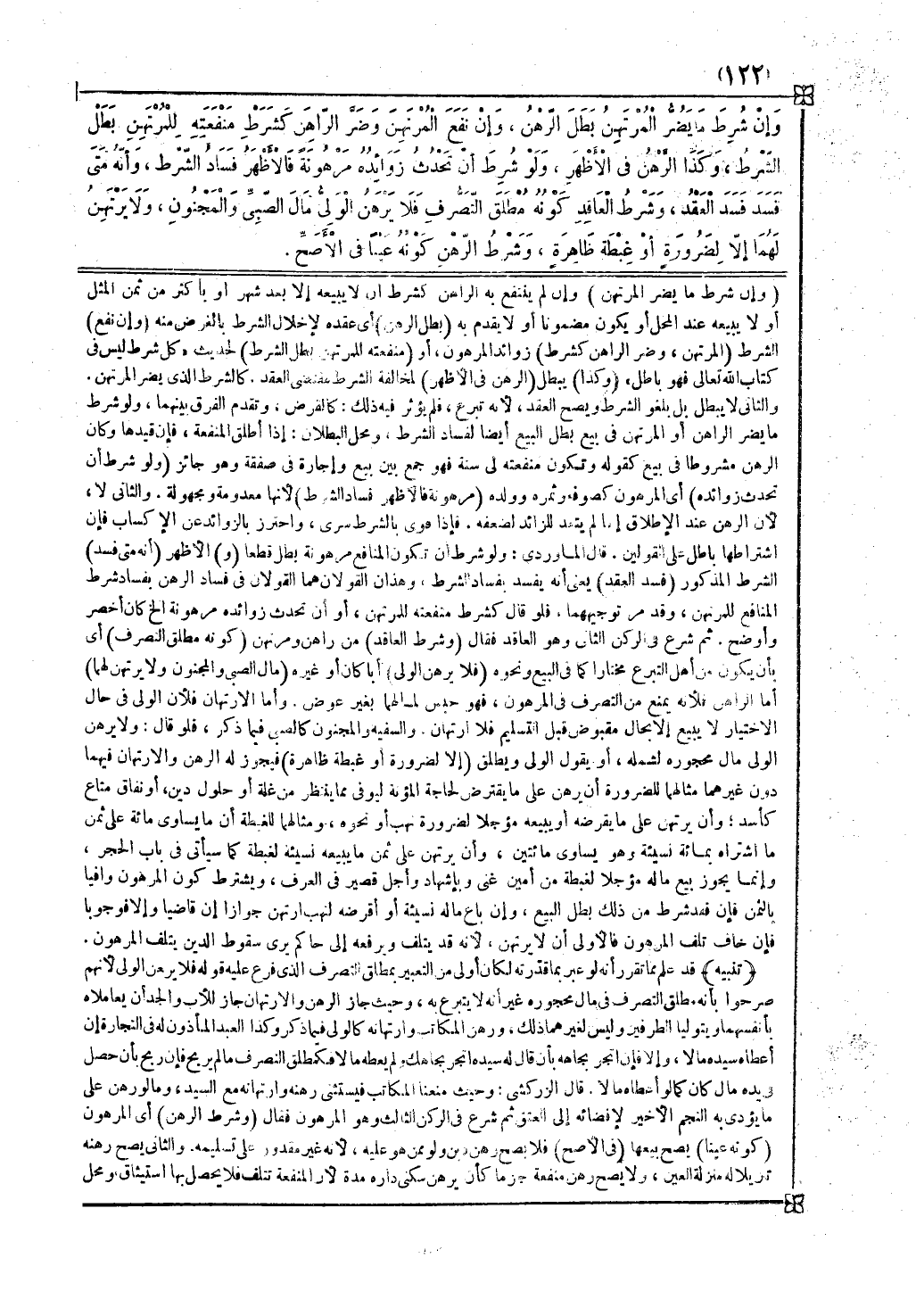 ( إلا لضرورة أو غبطة ظاهرة ) فيجوز له الرهن والإرتهان فيهما دون غيرهما