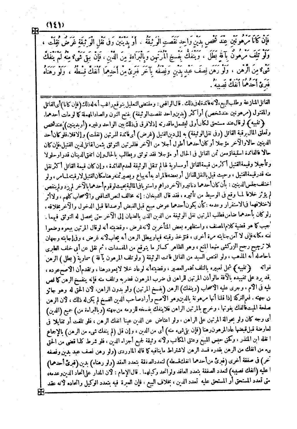 ( ولو رهناه ) بدين ( فبريء أحدهما ) مما عليه ( انفك نصيبه ) لتعدد الصفقة بتعدد العاقد ولو اتحد وكيلهما قال الإمام لأن المدار على اتحاد الدين وعدمه