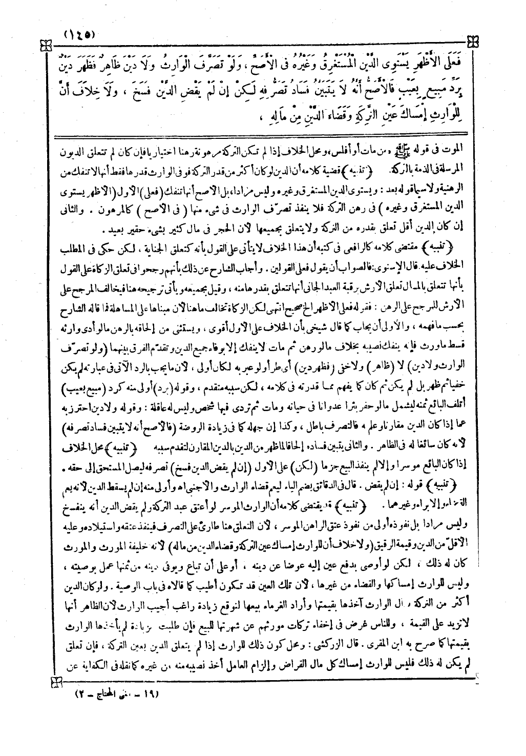 والثاني إن كان الدين أقل تعلق بقدره من التركة ولا يتعلق بجميعها لأن الحجر في مال كثير بشيء حقير بعيد
