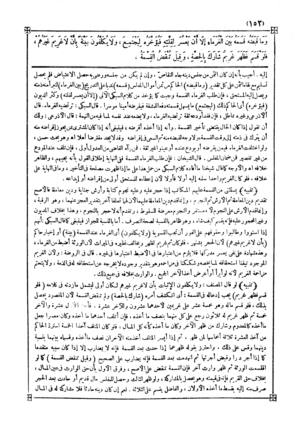 قال الأذرعي ولك أن تقول إذا كان الحال يقتضي تأخير القسمة وأنه إذا أخذه أقرضه فينبغي أنه إذا كان المشتري ممن يجوز إقراضه منه أن يترك في ذمته إلى وقت القسمة ولا وجه لقبضه منه ثم السعي في إقراضه وقد لا يجد مقترضا أهلا اه