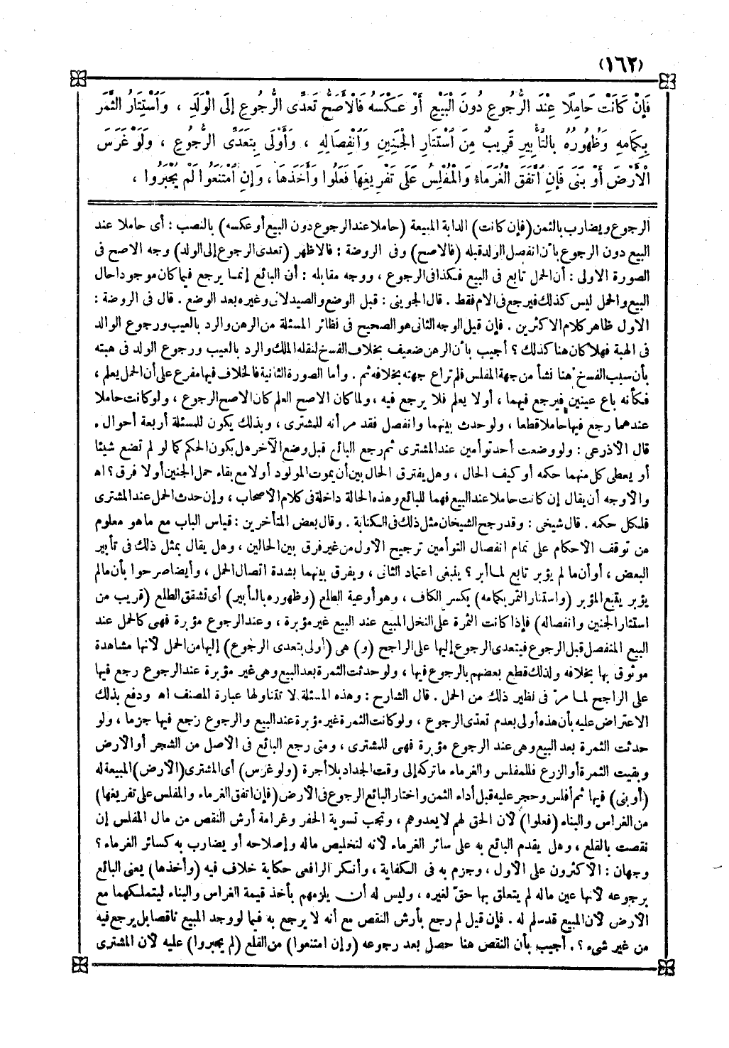 والأوجه أن يقال إن كانت حاملا عندالبيع فهما للبائع وهذه الحالة داخلة في كلام الأصحاب وإن حدث الحمل عند المشتري فلكل حكمه