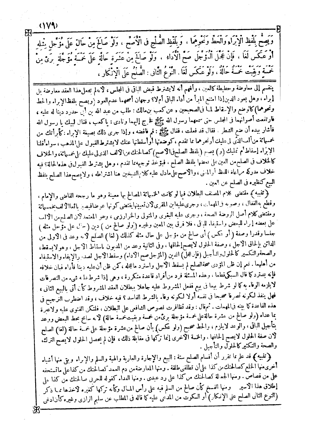 تنبيه قد علم مما تقرر أن أقسام الصلح ستة البيع والإجارة والعارية والهبة والسلم والإبراء