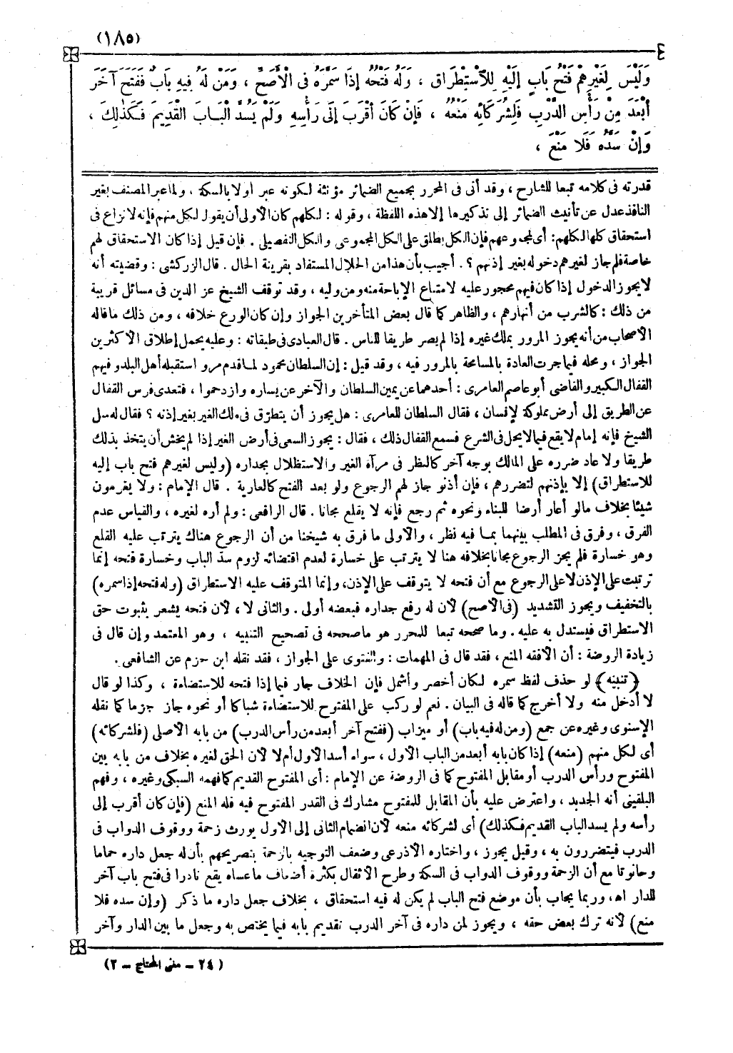 والثاني لا لأن فتحه يشعر بثبوت حق الاستطراق فيستدل به عليه
