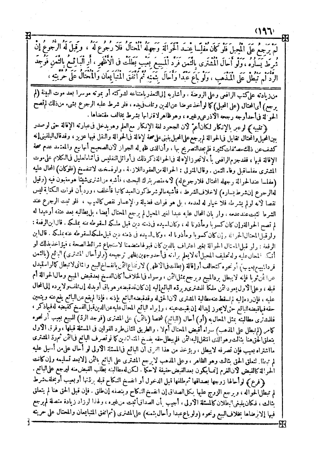 وعلى المذهب لا يرجع المشتري على البائع بالثمن إلا بعد تسليمه وإن كانت الحوالة كالقبض لأن الغرم إنما يكون بعدالقبض حقيقة لا حكما لكن له مطالبته بطلب القبض منه ليرجع على البائع