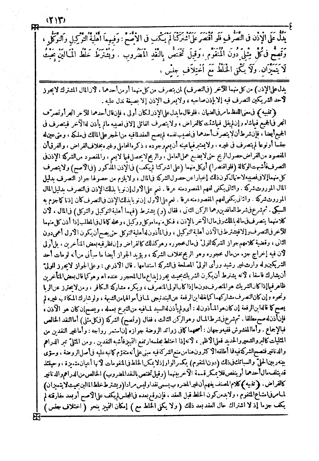 وقضية كلامهم جواز الشركة للولي في مال محجوره وهو كذلك كالقراض وإن نظر فيه بعض المتأخرين بل أولى لأن فيه إخراج جزء من مال محجوره وهو الربح بخلاف الشركة