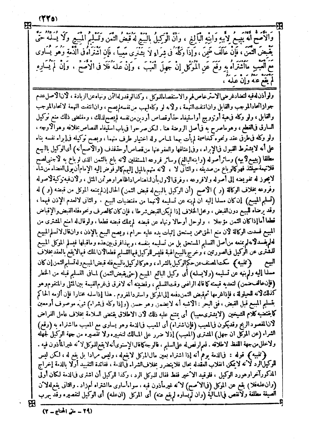 تنبيه سكت المصنف عن حكم الوكيل بالشراء وهو كالوكيل بالبيع فله قبض المبيع وله تسليم الثمن إن كان مسلما إليه ولم ينهه عن تسليمه
