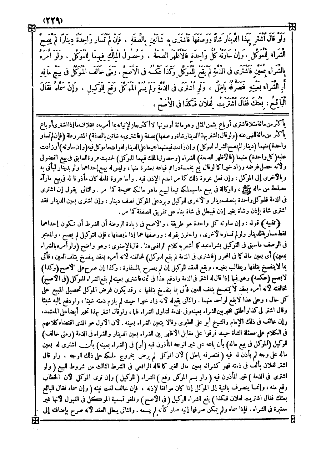 والثاني يقول إن اشترى في الذمة فلموكل واحدة بنصف دينار والأخرى للوكيل ويرد على الموكل نصف دينار وإن اشترى بعين الدينار فقد اشترى شاة بإذن وشاة بغير إذن فيبطل في شاة بناء على تفريق الصفقة كما مر