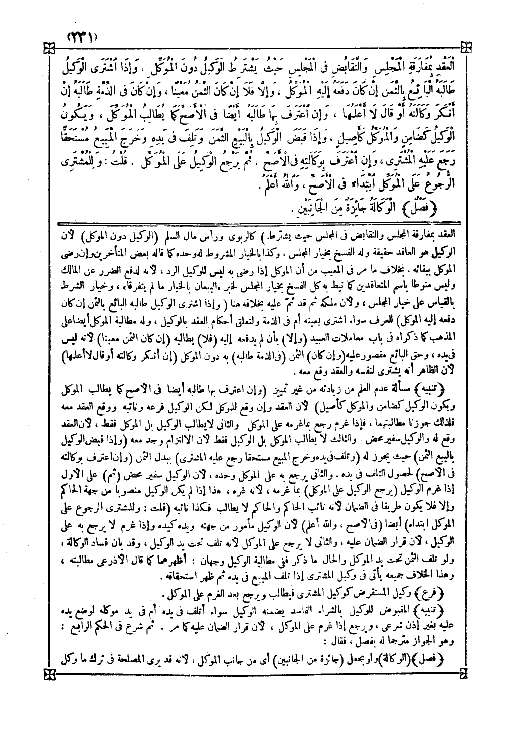 ثم شرع في الحكم الرابع وهو الجواز مترجما له بفصل فقال فصل الوكالة ولو بجعل ( جائزة من الجانبين ) أي من جانب الموكل لأنه قد يرى المصلحة في ترك ما وكل