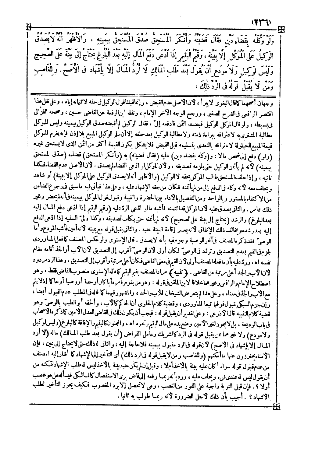 ( والأظهر أنه لا يصدق الوكيل على الموكل إلا ببينة ) أو شاهد ويحلف معه لأنه وكله في الدفع إلى من لم يأتمنه فكان من حقه الإشهاد عليه وعلى هذا فيأتي فيه ما سبق في رجوع الضامن من الإكتفاء بالمستور وبالواحد ومن التفصيل بالأداء بين الحضرة والغيبة وقبول قول الموكل بيمينه في أنه لم يحضر وغير ذلك مما مر