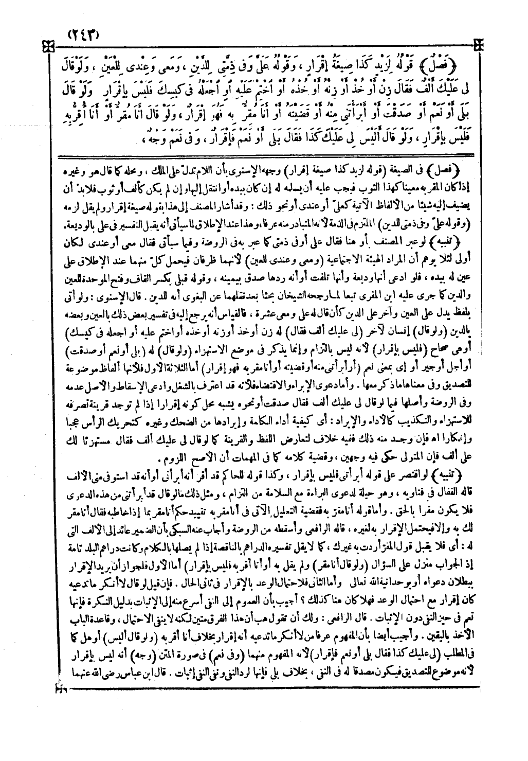 وأما قوله أنا مقر به فقضية التعليل الآتي في أنا مقر به تقييد حكم أنا مقر بما إذا خاطبه فقال أنا مقر لك به وإلا فيحتمل الإقرار به لغيره قاله الرافعي وأسقطه من الروضة وأجاب عنه السبكي بأن الضمير عائد إلى الألف التي له أي فلا يقبل قول المقر أردت به غيرك كما لا يقبل تفسيره الدراهم بالناقصة إذا لم يصلها بالكلام وكانت دراهم البلد تامة إذ الجواب منزل على السؤال