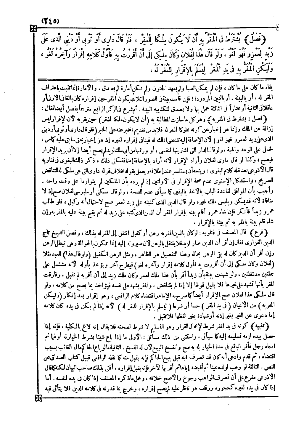 تنبيه كونه في يد المقر شرط لإعمال القرار وهو التسليم لا شرط لصحته فلا يقال إنه لاغ بالكلية فإنه إذا حصل بيده لزمه تسليمه إليه كما سيأتي