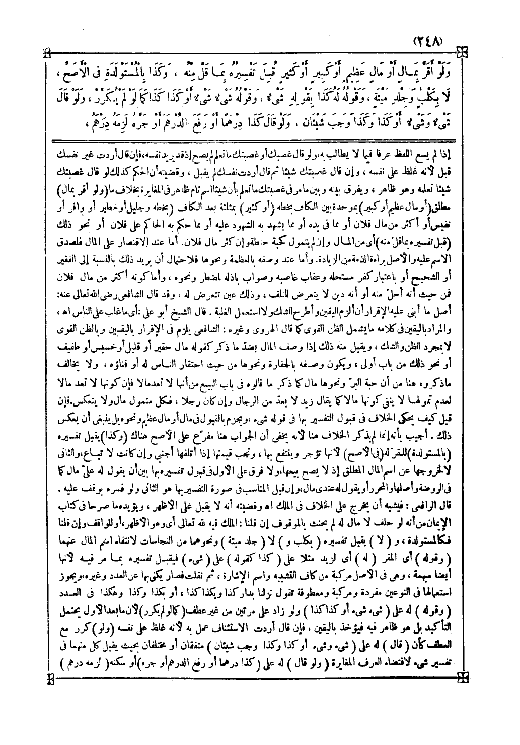ولا فرق على الأول في قبول تفسيره بها بين أن يقول له علي مال كما في الروضة وأصلها والمحرر أو يقول له عندي مال وإن قيل المناسب في صورة التفسير بها هو الثاني