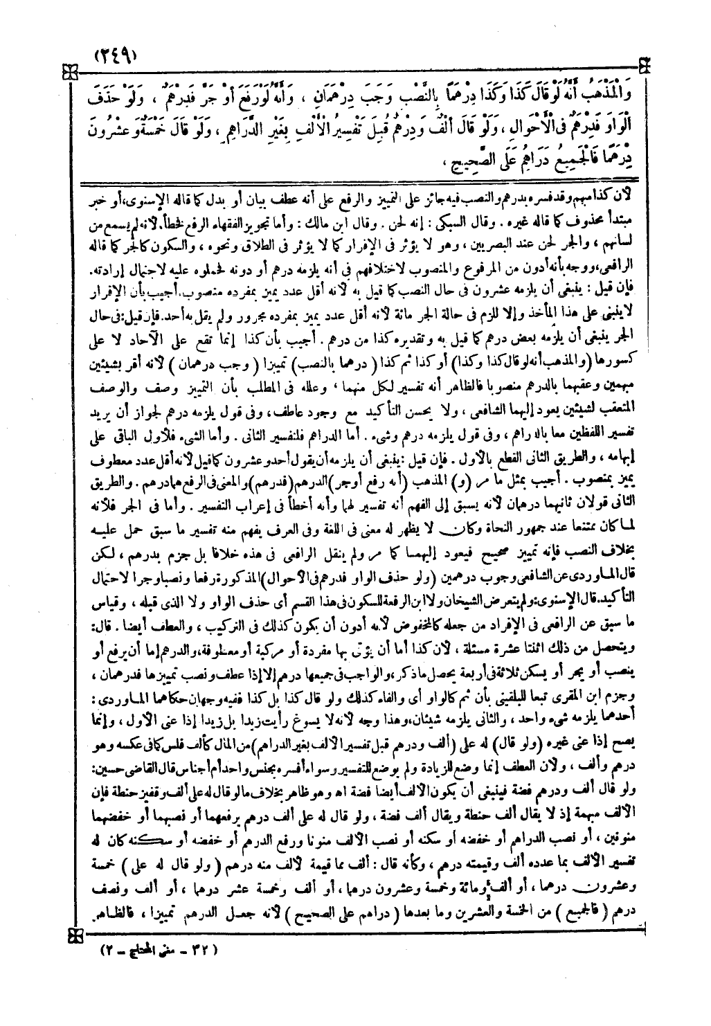 والجر لحن عند البصريين وهو لا يؤثر في الإقرار كما لا يؤثر في الطلاق ونحوه والسكون كالجر كما قاله الرافعي ووجه بأنه أدون من المرفوع والمنصوب لاختلافهم في أنه يلزمه درهم أو دونه فحملوه عليه لاحتمال إرادته