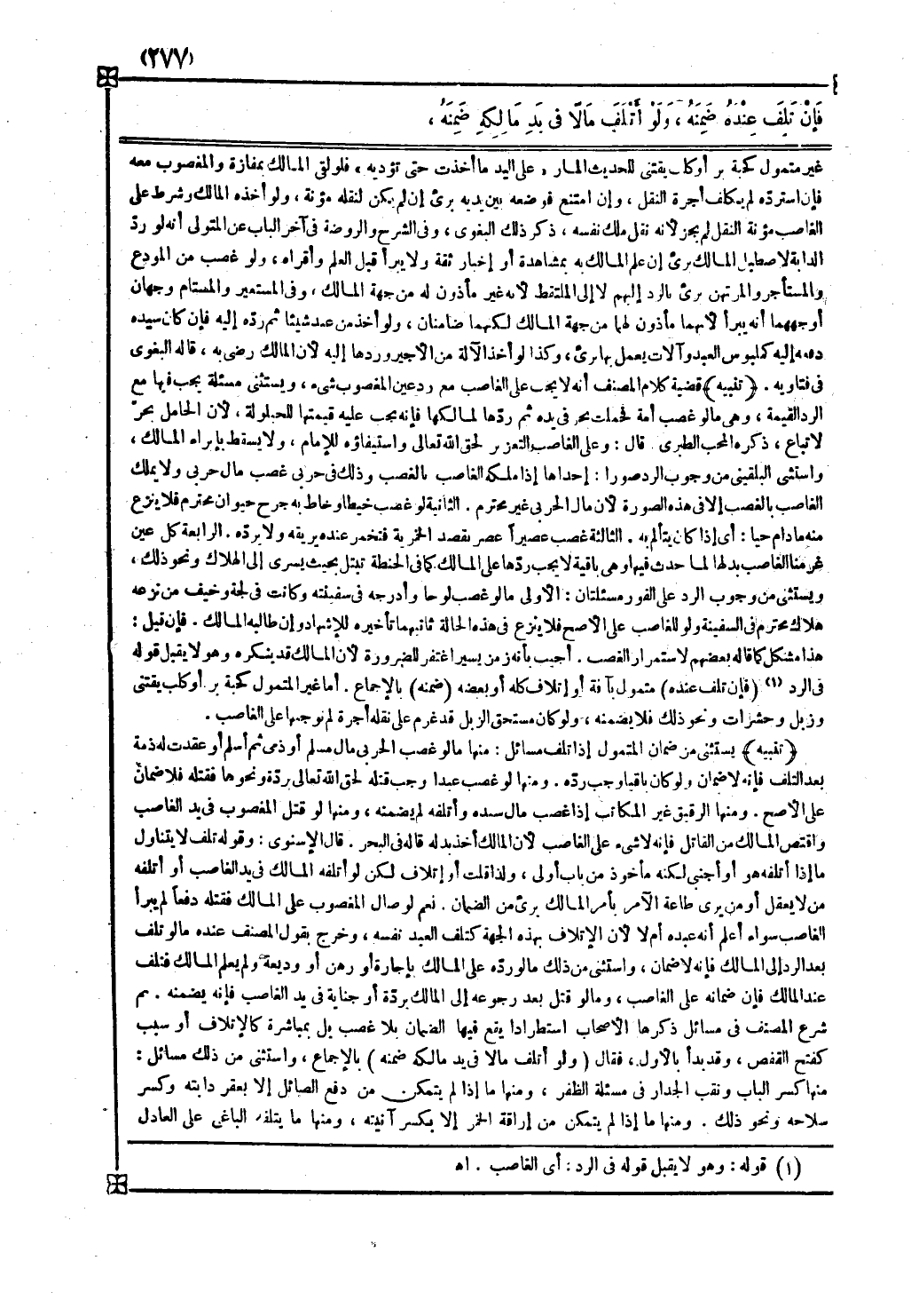 تنبيه يستثنى من ضمان المتمول إذا تلف مسائل منها ما لو غصب الحربي مال مسلم أو ذمي ثم أسلم أو عقدت له ذمة بعد التلف فإنه لا ضمان ولو كان باقيا وجب رده