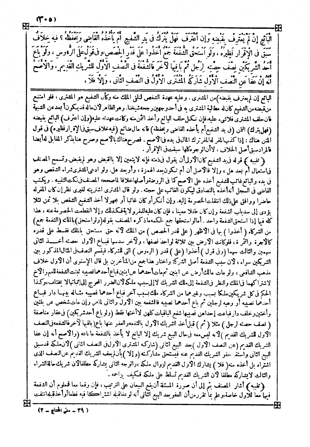والثالث لا يشاركه مطلقا لأن الشريك القديم تسلط على ملكه فكيف يزاحمه