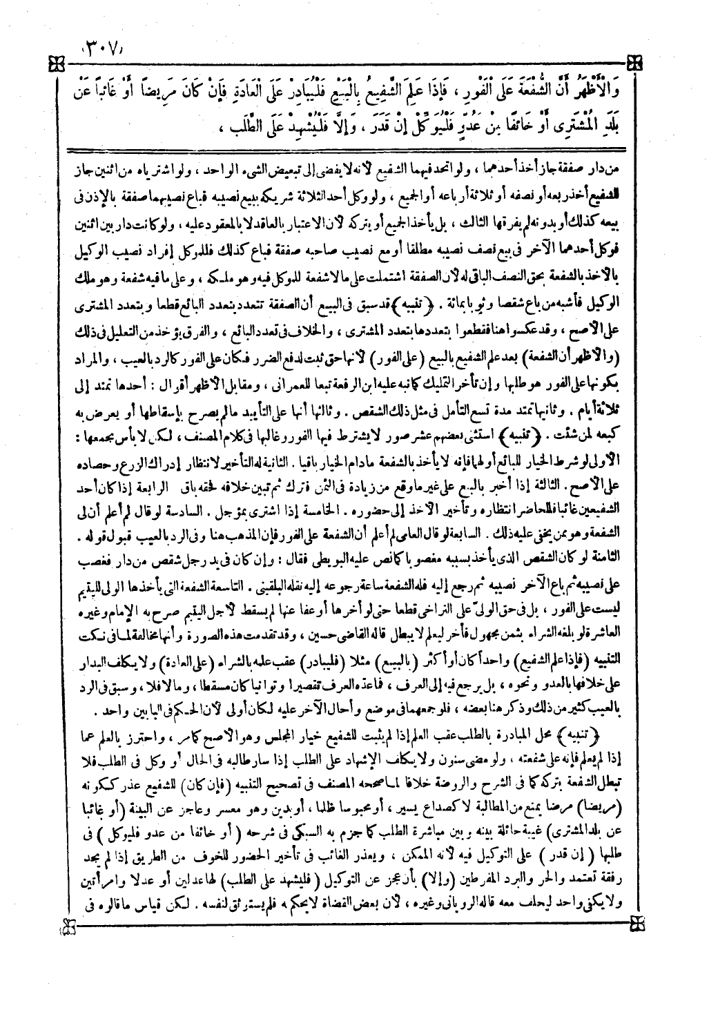 والمراد بكونها على الفور هو طلبها وإن تأخر التمليك كما نبه عليه ابن الرفعة تبعا للعمراني