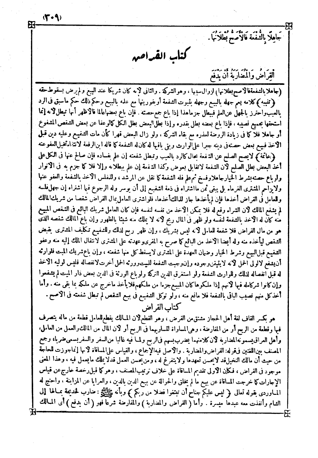 هو بكسر القاف لغة أهل الحجاز مشتق من القرض وهو القطع لأن المالك يقطع للعامل قطعة من ماله يتصرف فيها وقطعة من الربح