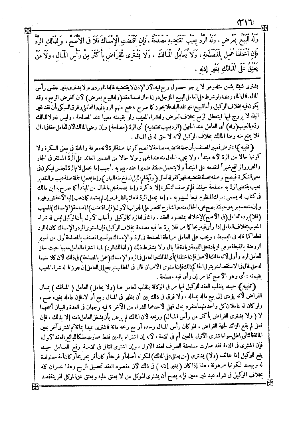 ( وله ) أي العامل عند الجهل ( الرد بعيب تقتضيه ) أي الرد ( مصلحة ) وإن رضي المالك لأن للعامل حقا في المال فلا يمنع منه رضا المالك بخلاف الوكيل لأنه لا حق له في المال