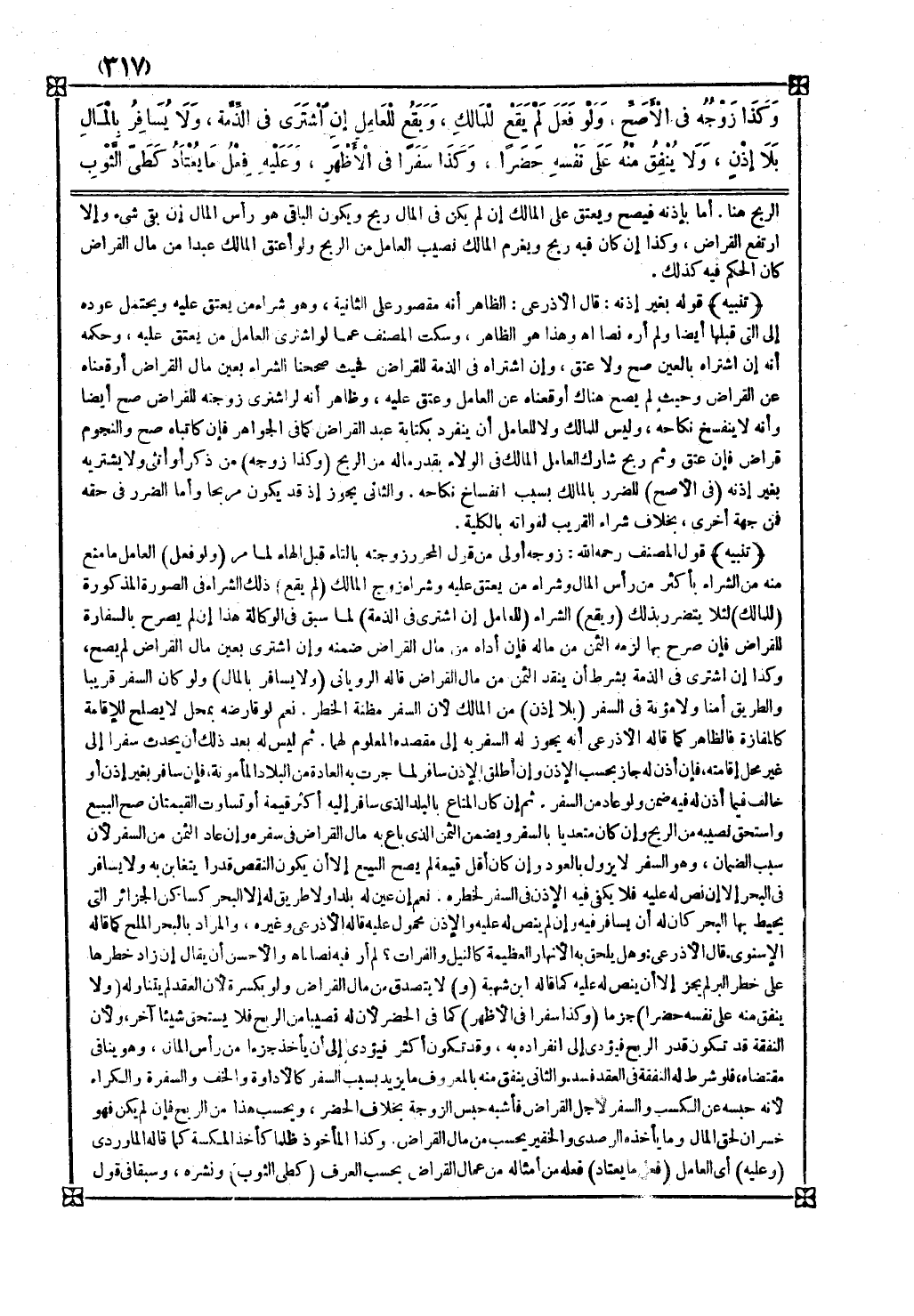 ( ولا يسافر بالمال ) ولو كان السفر قريبا والطريق آمنا ولا مؤنة في السفر ( بلا إذن ) من المالك لأن السفر مظنة الخطر