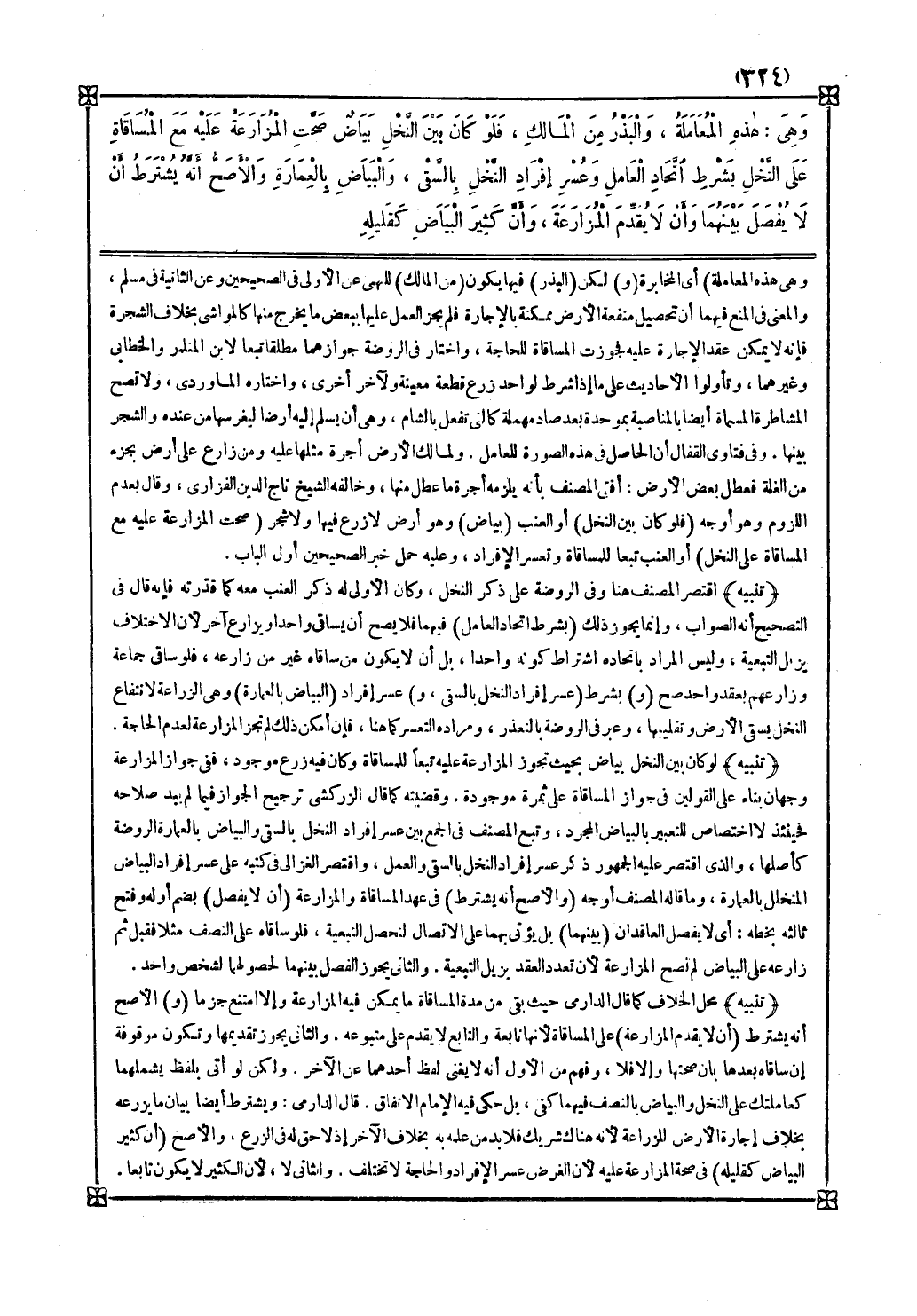 وتبع المصنف في الجمع بين عسر إفراد النخل بالسقي والبياض بالعمارة الروضة كأصلها والذي اقتصر عليه الجمهور ذكر عسر إفراد النخل بالسقي والعمل واقتصر الغزالي في كتبه على عسر إفراد البياض المتخلل بالعمارة وما قاله المصنف أوجه