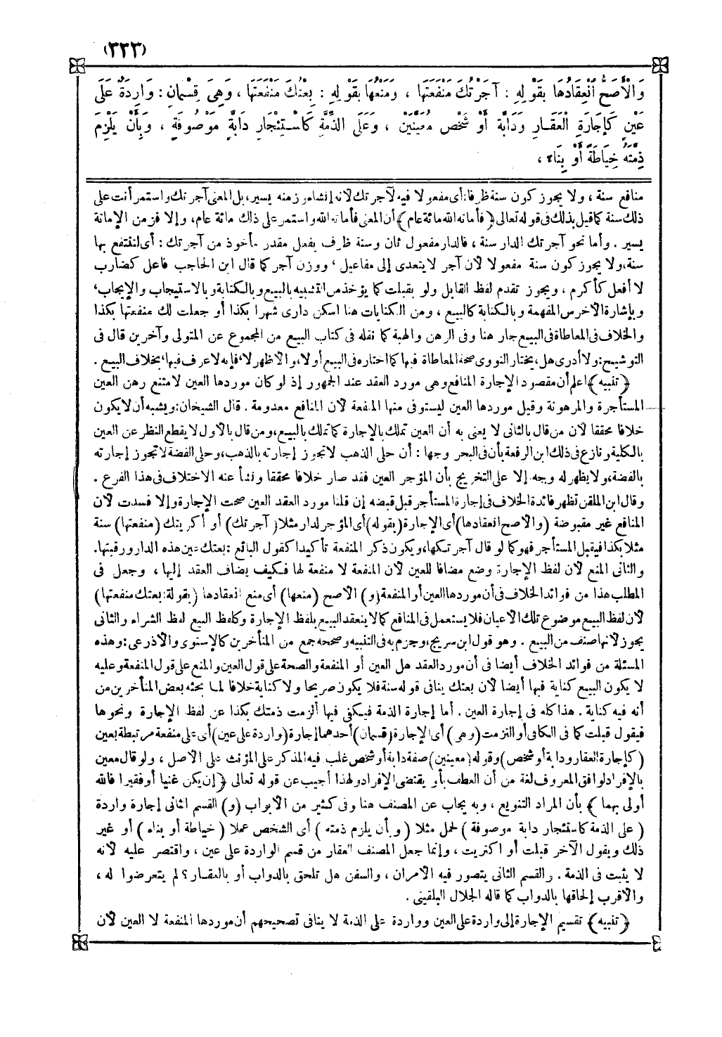 تنبيه تقسيم الإجارة إلى واردة على العين وواردة على الذمة لا ينافي تصحيحهم أن موردها المنفعة لا العين لأن
