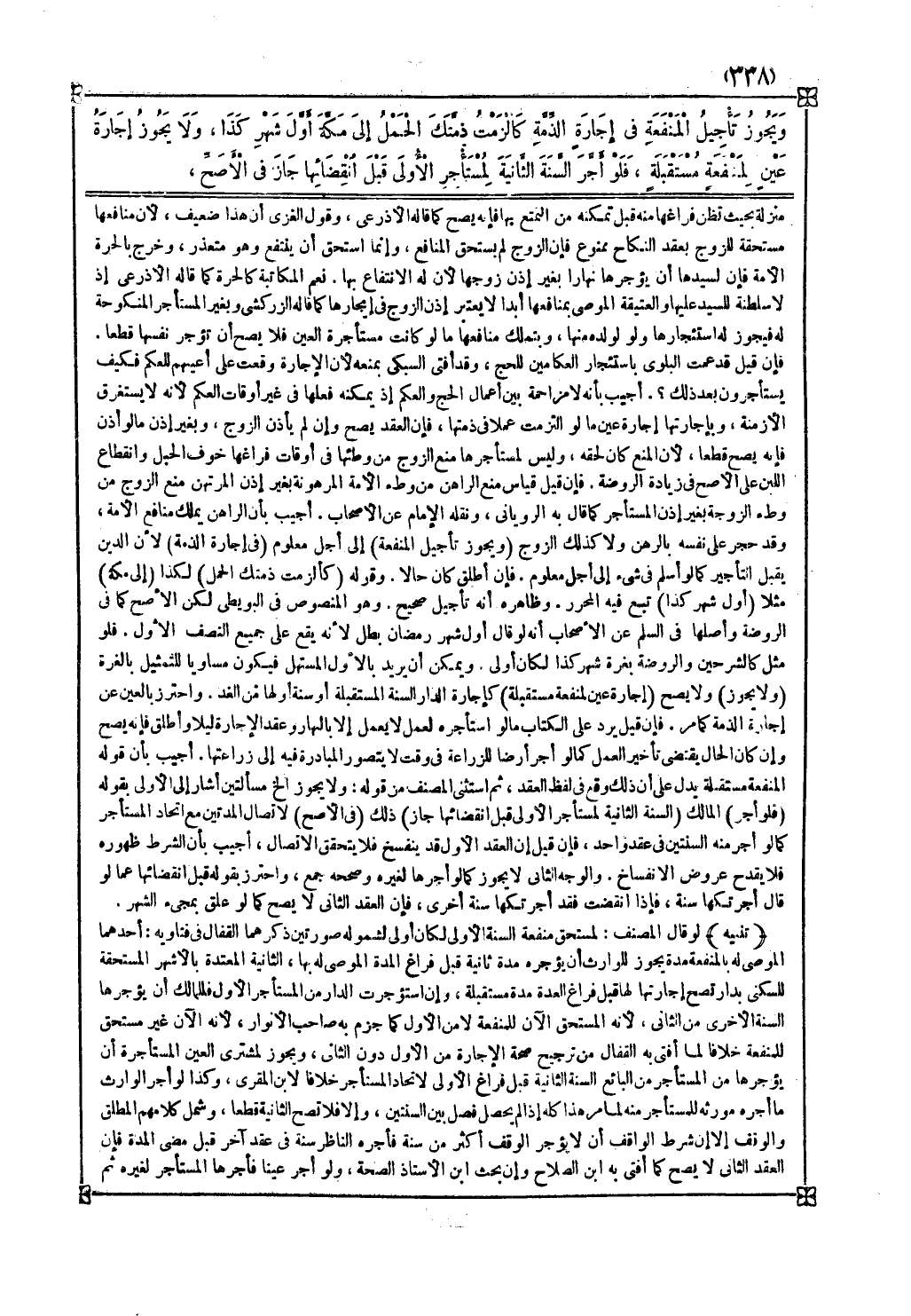 وشمل كلامهم المطلق والوقف إلا إن شرط الواقف أن لا يؤجر الوقف أكثر من سنة فأجره الناظر سنة في عقد آخر قبل مضي المدة فإن العقد الثاني لا يصح كما أفتى به ابن الصلاح وإن بحث ابن الأستاذ الصحة