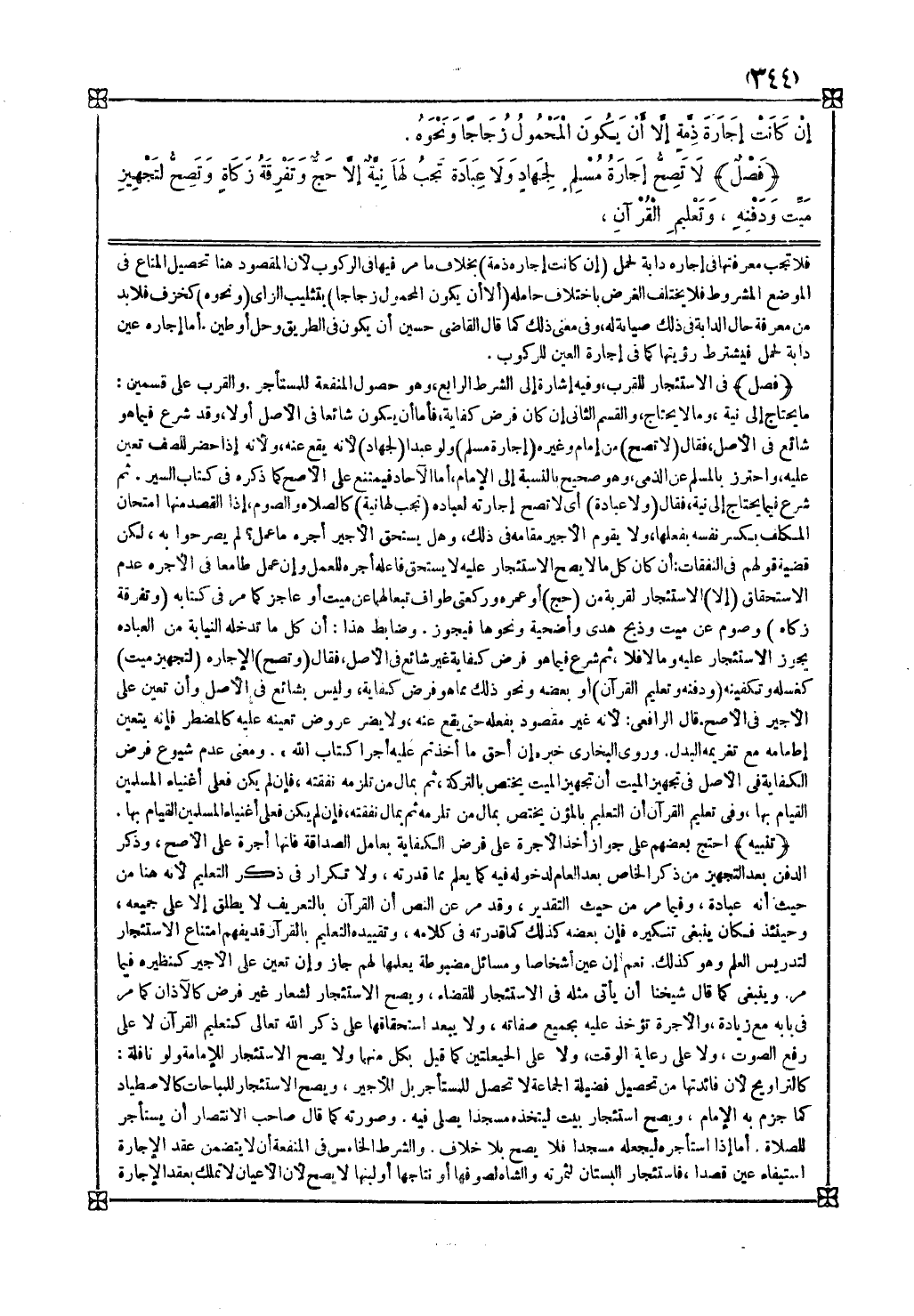 ومعنى عدم شيوع فرض الكفاية في الأصل في تجهيز الميت أن تجهيز الميت يختص بالتركة ثم بمال من تلزمه نفقته فإن لم يكن فعلى أغنياء المسلمين القيام بها وفي تعليم القرآن أن التعليم بالمؤمن يختص بمال من تلزمه ثم بمال نفقته فإن لم يكن فعلى أغنياء المسلمين القيام بها