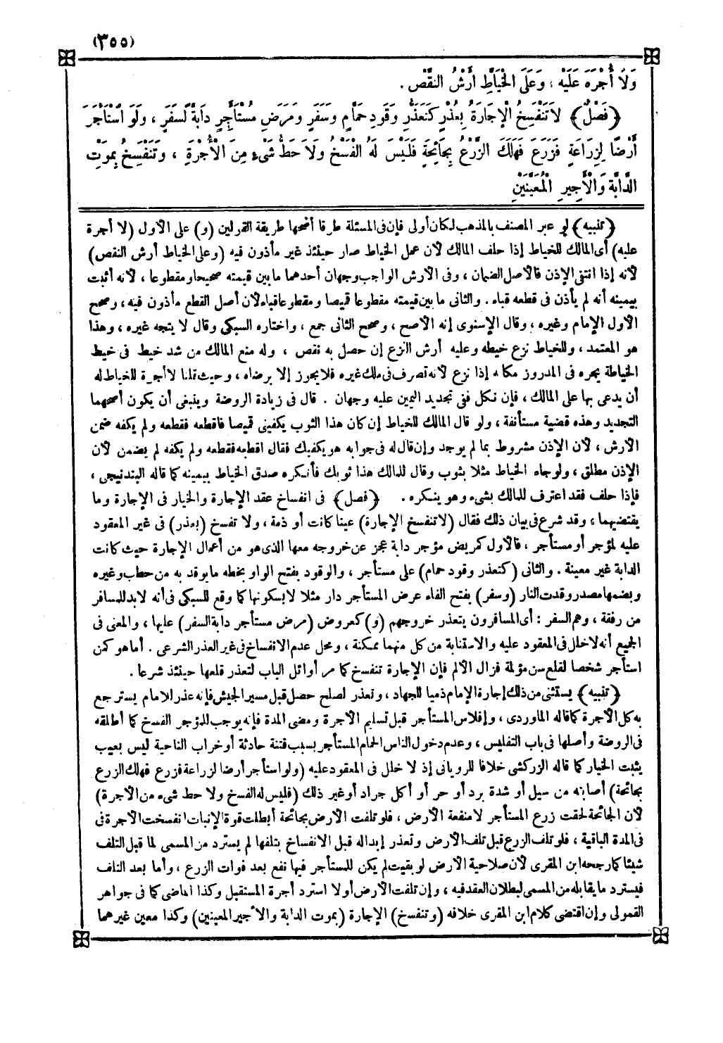 ومحل عدم الانفساخ في غير العذر الشرعي أما هو كمن استأجر شخصا لقلع سن مؤلمة فزال الألم فإن الإجارة تنفسخ كما مر أوائل الباب لتعذر قلعها حينئذ شرعا