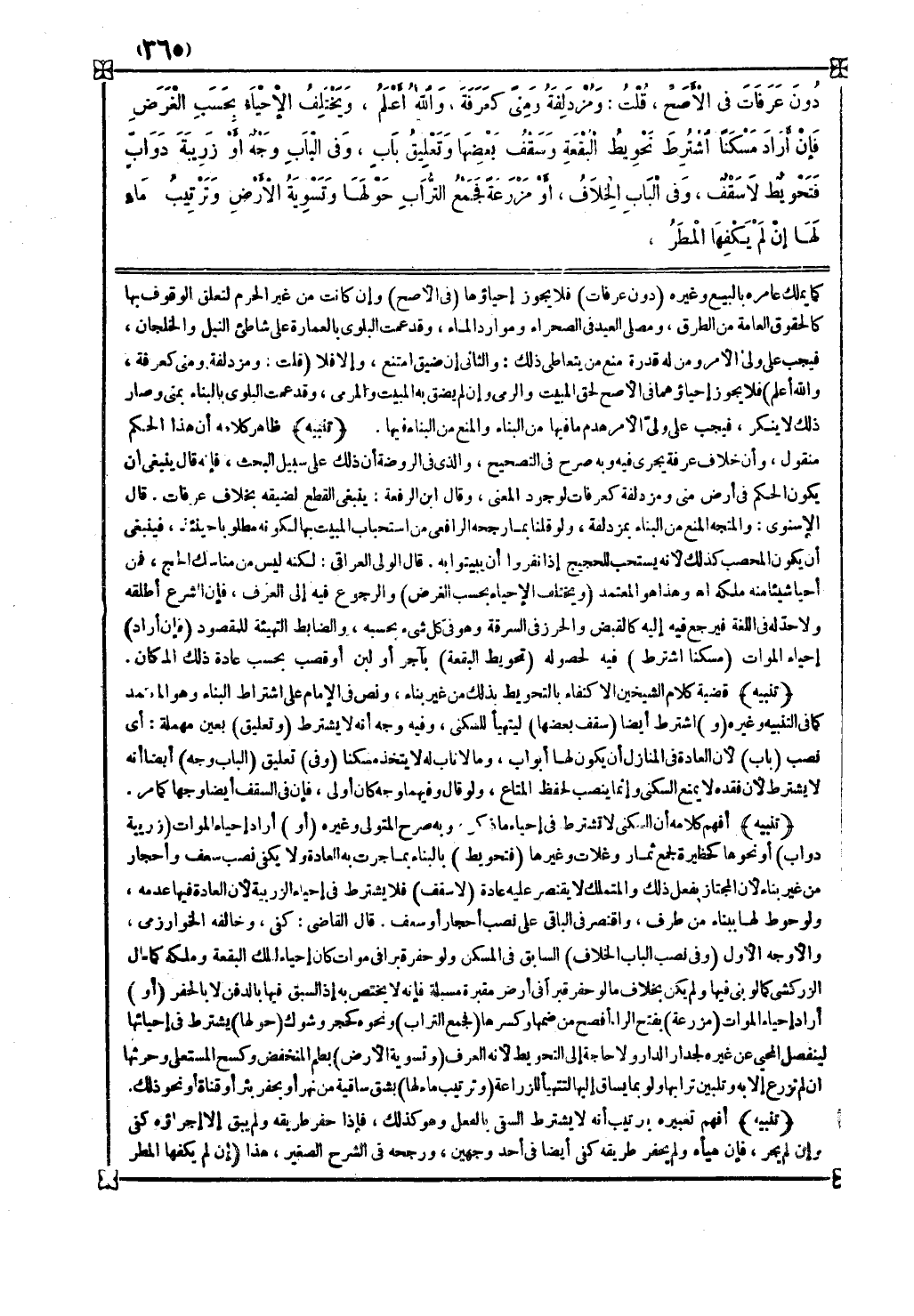 وقد عمت البلوى بالعمارة على شاطى النيل والخلجان فيجب على ولي الأمر ومن له قدرة منع من يتعاطى ذلك