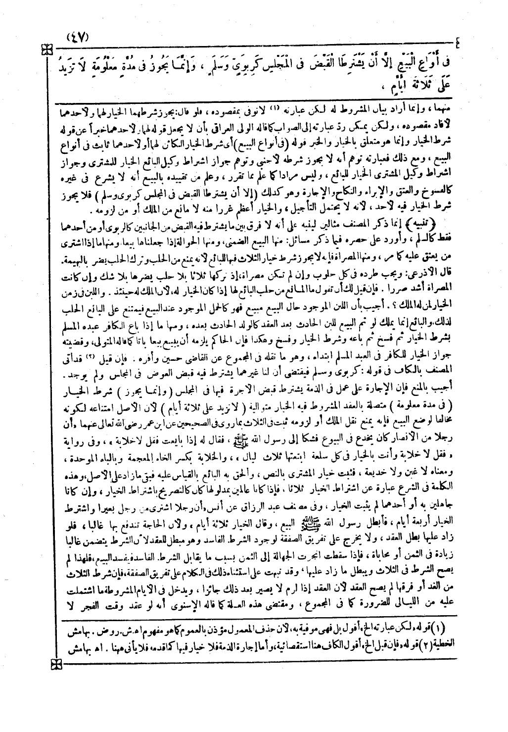 ومنها ما إذا باع الكافر عبده المسلم بشرط الخيار ثم فسخ ثم باعه وشرط الخيار وفسخ وهكذا فإن الحاكم يلزمه أن يبيع بيعا باتا كما قاله المتولي وقضيته جواز الخيار للكافر في العبد المسلم ابتداء وهو ما نقله في المجموع عن القاضي حسين وأقره