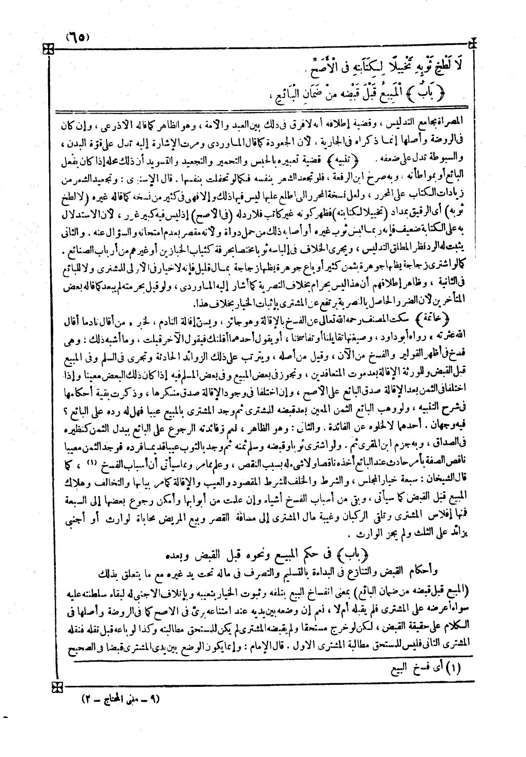 باب في حكم المبيع ونحوه قبل القبض وبعده وأحكام القبض والتنازع في البداءة بالتسليم والتصرف في ماله تحت يد غيره مع ما يتعلق بذلك