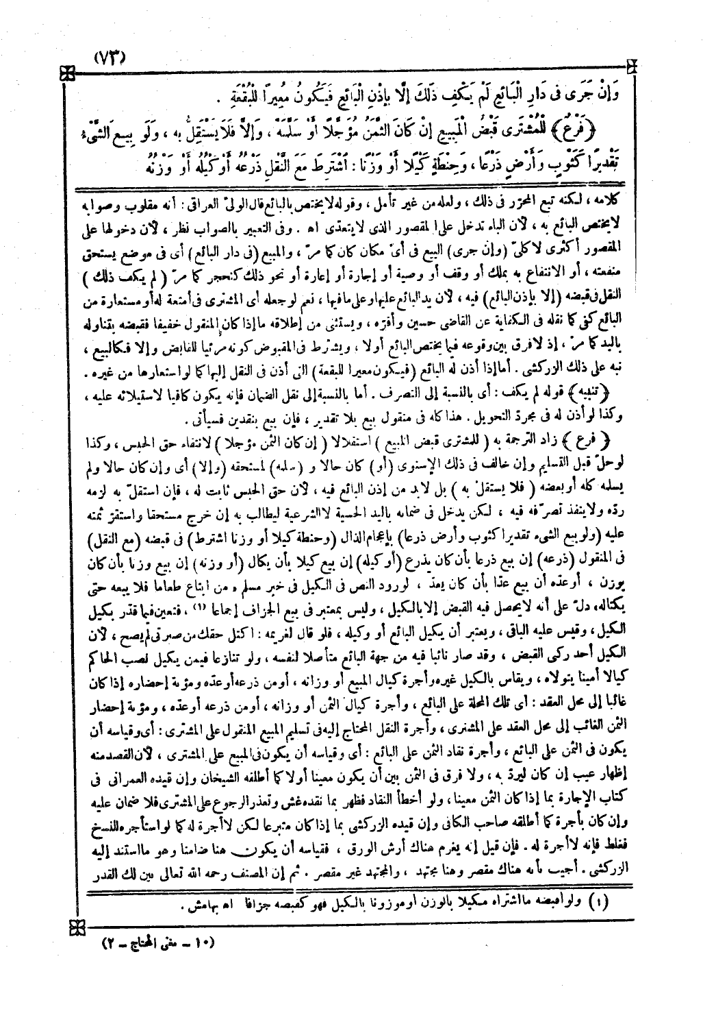 فرع زاد الترجمة به ( للمشتري قبض المبيع ) استقلالا ( إن كان الثمن مؤجلا ) لانتفاء حق الحبس وكذا لو حل قبل التسليم وإن خالف في ذلك الإسنوي