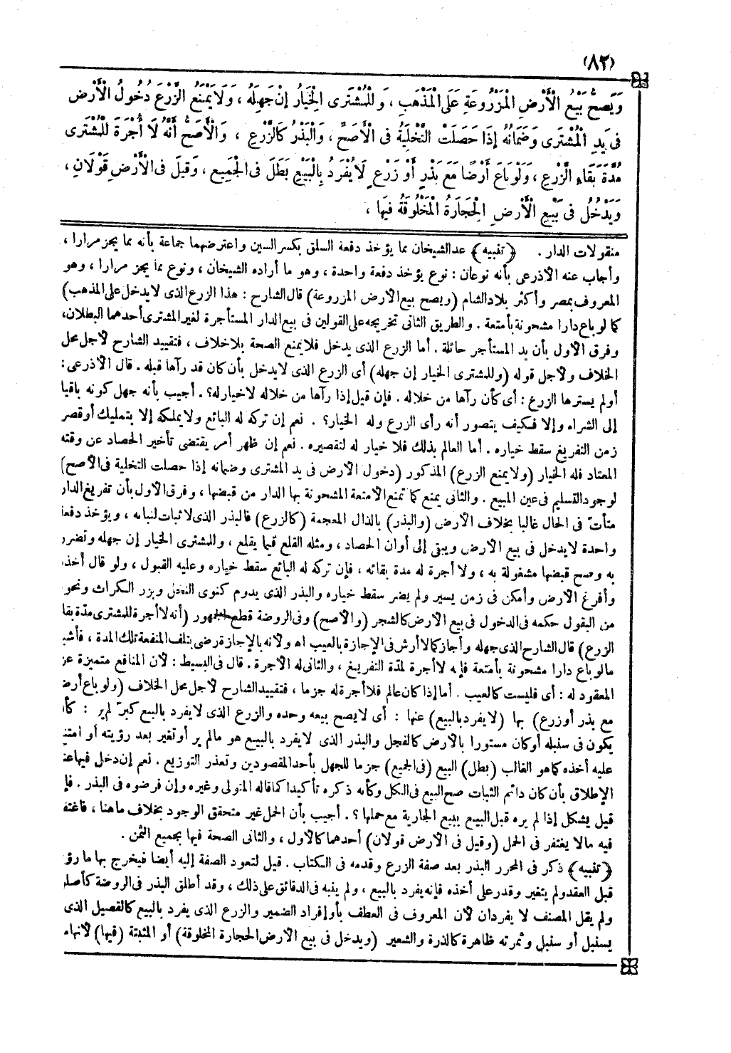 ( ويصح بيع الأرض المزروعة ) قال الشارح هذا الزرع الذي لا يدخل ( على المذهب ) كما لو باع دارا مشحونة بأمتعة