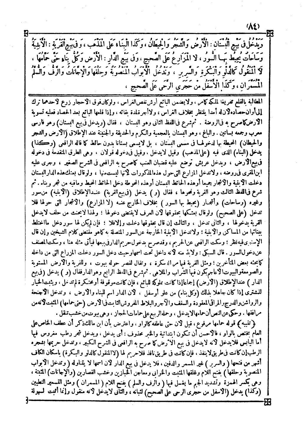 وحيث دخل السور دخلت المزراع التي من داخله كما بحثه بعض المتأخرين ومثل القرية فيما مر الدسكرة وتقال لقصر حوله بيوت وللقرية والأرض المستوية والصومعة والبيوت الأعاجم يكون فيها الشراب والملاهي
