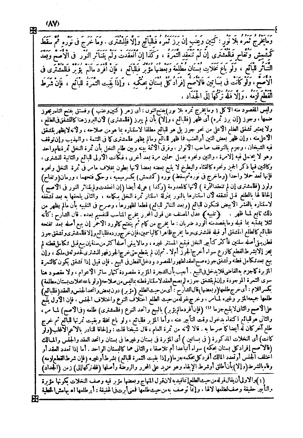وإن ظهر بعض التين أو العنب فما ظهر للبائع وما لم يظهر فللمشتري كما في التتمة والتهذيب وإن توقف فيه الشيخان وجزم بالتوقف صاحب الأنوار وفرق الأثمة بينه وبين طلع النخل بأن ثمرة النخل ثمرة عام واحد وهو لا يحمل فيه إلا مرة والتين ونحوه يحمل حملين مرة بعد أخرى فكانت الأولى للبائع والثانية للمشتري