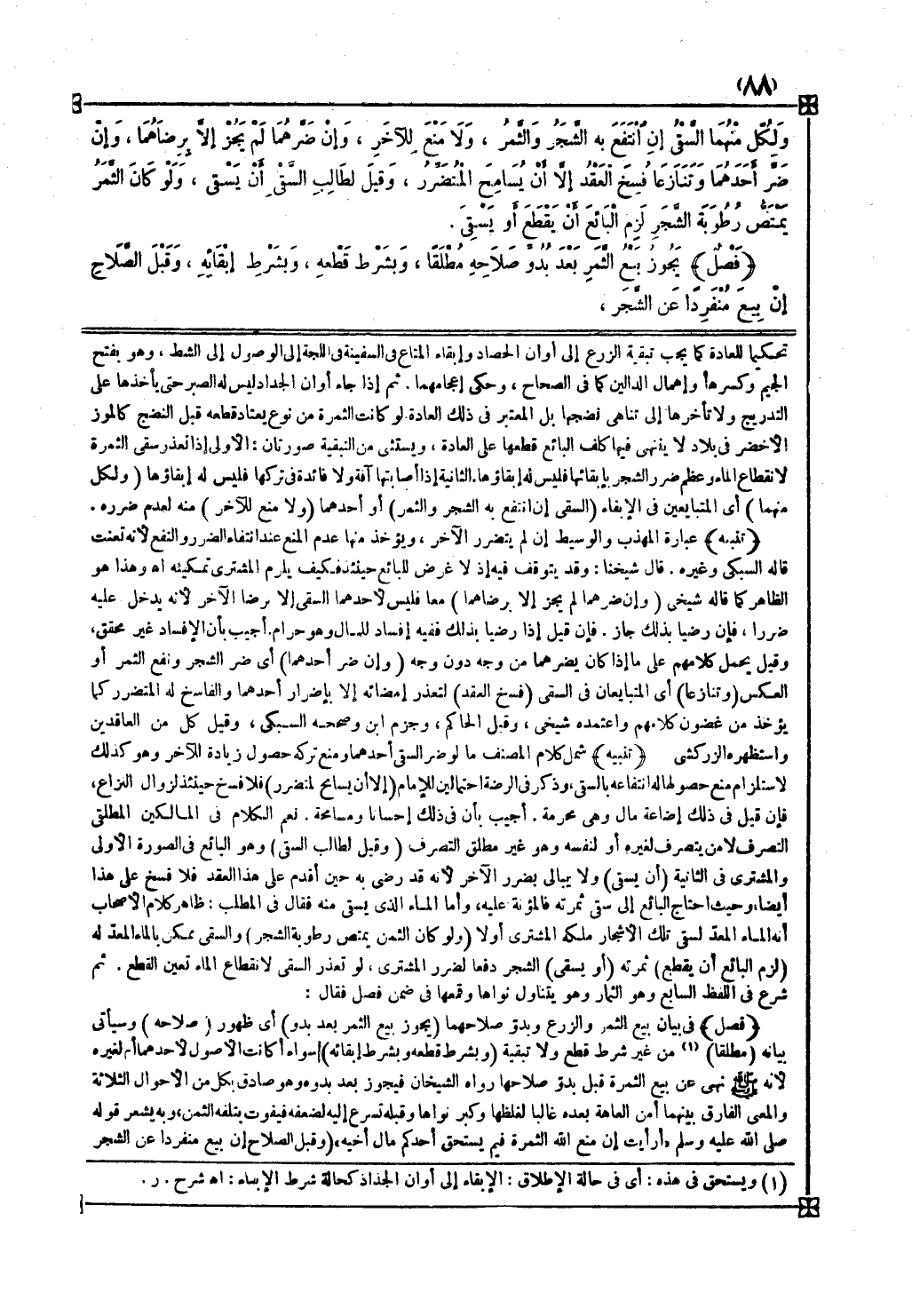 ثم شرع في اللفظ السابع وهو الثمار وهو يتناول نواها وقمعها في ضمن فصل فقال فصل في بيان بيع الثمر والزرع وبدو صلاحهما ( يجوز بيع الثمر بعد بدو ) أي ظهور ( صلاحه ) وسيأتي بيانه ( مطلقا ) من غير شرط قطع ولا تبقية