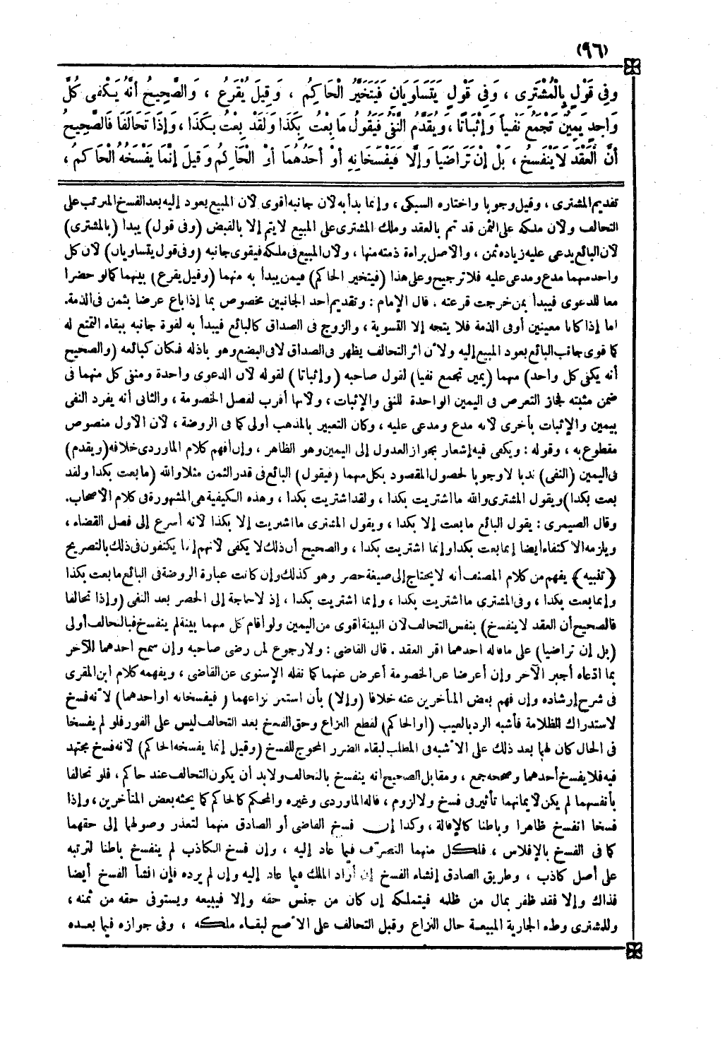 وحق الفسخ بعد التحالف ليس على الفور فلو لم يفسخا في الحال كان لهما بعد ذلك على الأشبه في المطلب لبقاء الضرر المحوج للفسخ