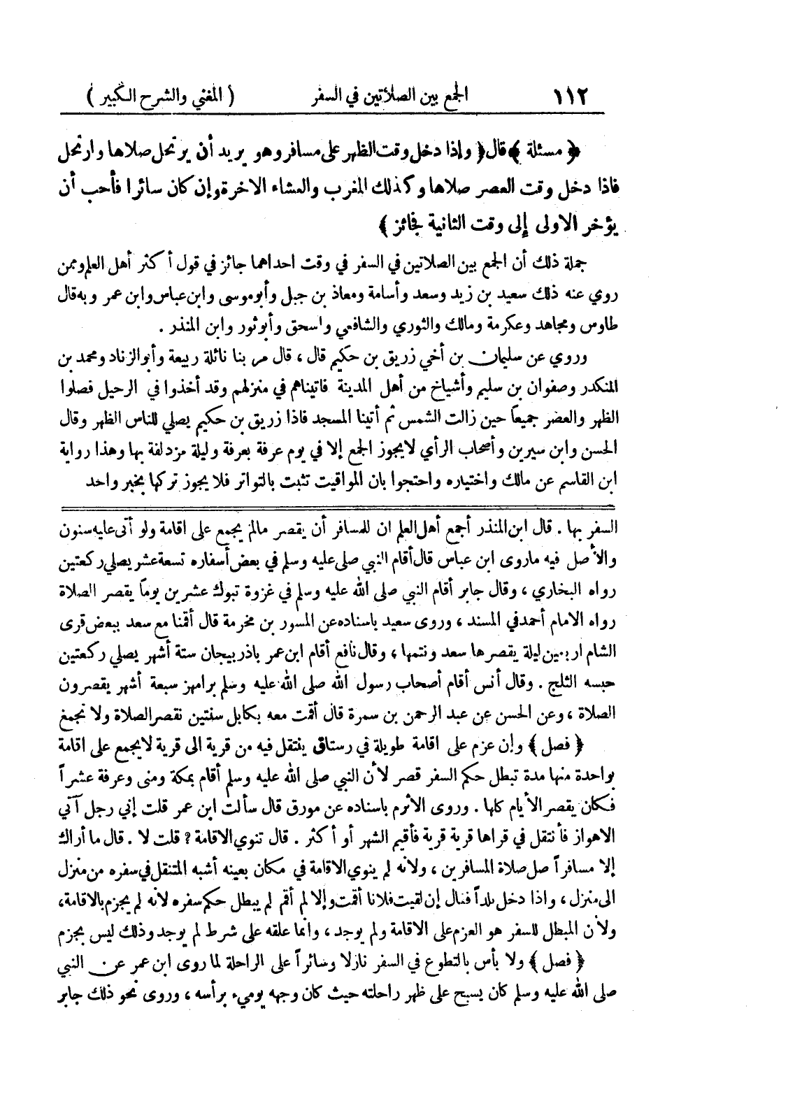 قال ما أراك إلا مسافرا صلى صلاة المسافرين، ولأنه لم ينوي الإقامة في مكان بعينه أشبه المتنقل في سفره من منزل الى منزل، واذا دخل بلداً فنال إن لقيت فلاناً أقمت وإلا لم أقم لم يبطل حكم سفره لأنه لم يجزم بالإقامة، ولأن المبطل للسفر هو العزم على الإقامة ولم يوجد، وانما علقه على شرط لم يوجد وذلك ليس بجزم * (فصل) * ولا بأس بالتطوع في السفر نازلاً وسائراً على الراحلة لما روى ابن عمر عن النبي صلى الله عليه وسلم كان يسبح على ظهر راحلته حيث كان وجهه يومئ برأسه، وروي نحو ذلك جابر