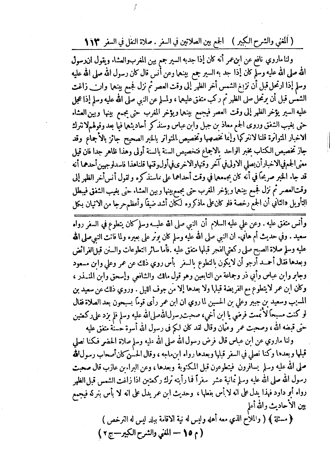 رواه أبو داود فهذا يدل على أنه لا بأس بفعلها، وحديث ابن عمر يدل على أنه لا بأس بتركه فيجمع بين الأحاديث والله أعلم * (مسألة) * (والملاح الذي معه أهله وليس له نية الاقامة ببلد ليس له الترخص)