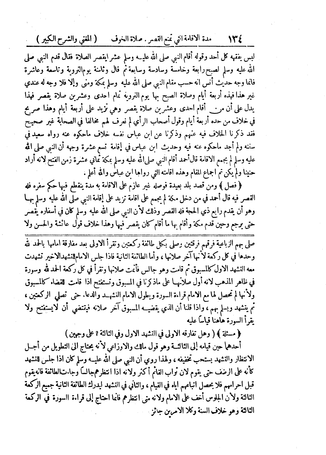 كأنه على الرضف حتى يقوم لأن ثواب القائم اكثر ولأنه اذا انتطرهم جالساً وجاءت الطائفة فانه يقوم قبل احرامهم فلا يحصل اتباعهم إياه في القيام، والثاني في التشهد ليدرك الطائفة الثانية جميع الركعة الثالثة ولأن الجلوس أخف على الامام ولأنه متى انتظرهم فإنما احتاج إلى قراءة السورة في الركعة الثالة وهو خلاف السنة وكلا الامرين جائز