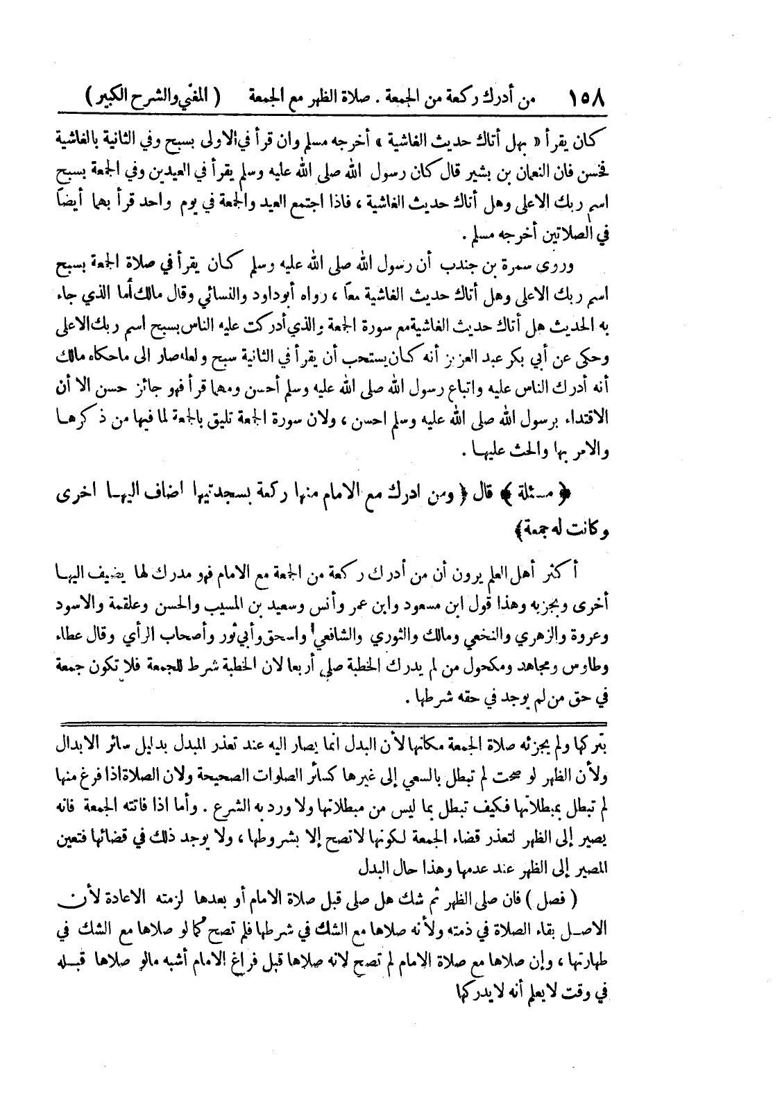 وأما اذا فاتته الجمعة فانه يصير إلى الظهر لتعذر قضاء الجمعة لكونها لا تصح إلا بشروطها، ولا يوجد ذلك في قضائها فتعين المصير إلى الظهر عند عدمها وهذا حال البدل (فصل) فإن صلى الظهر ثم شك هل صلى قبل صلاة الامام أو بعدها لزمته الاعادة لأن الأصل بقاء الصلاة في ذمته ولأنه صلاها مع الشك في شرطها فلم تصح كما لو صلاها مع الشك في طهارتها، وإن صلاها مع صلاة الامام لم تصح لأنه صلاها قبل فراغ الامام أشبه ما لو صلاها قبله في وقت لا يعلم أنه لا يدركها