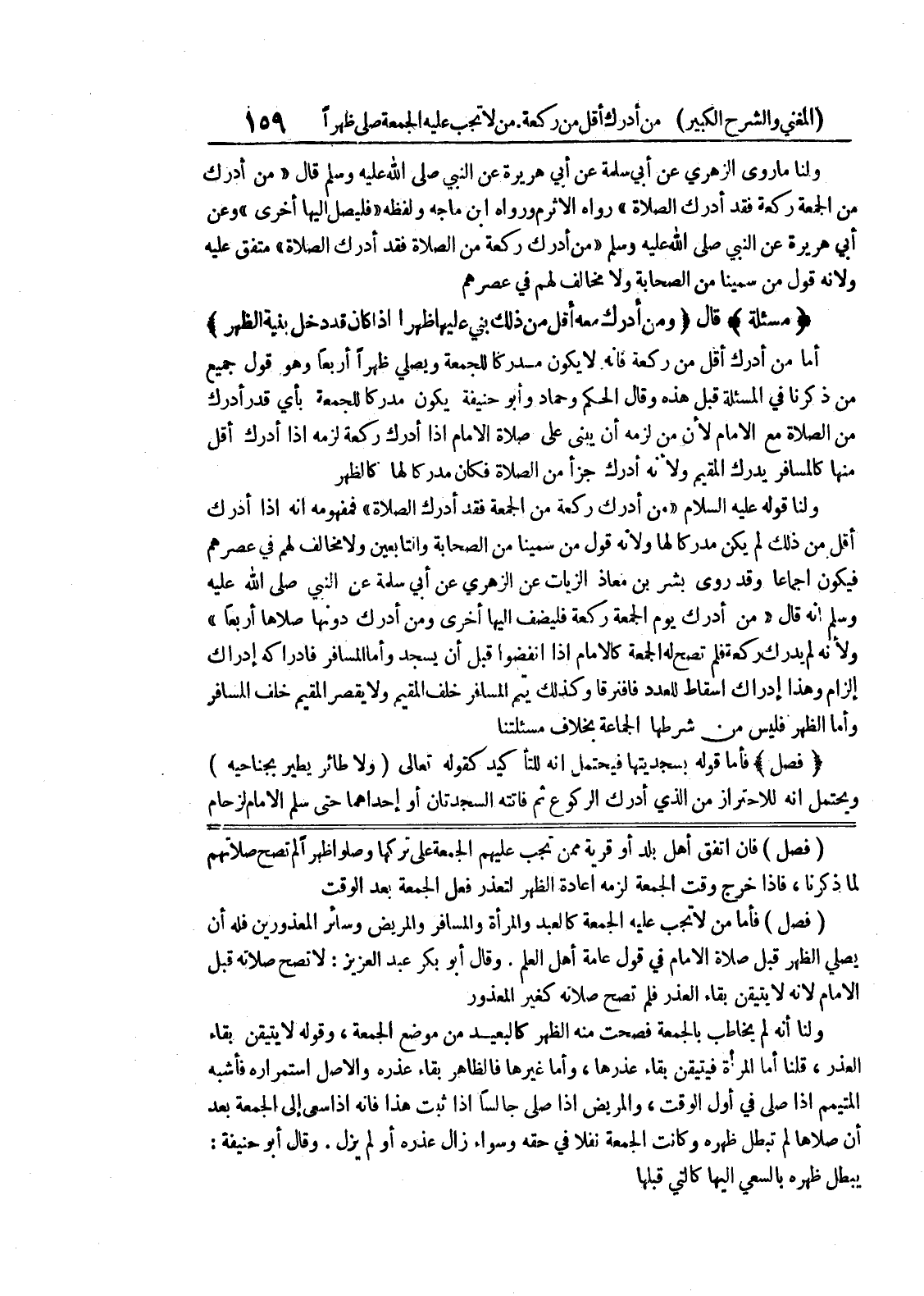 ولنا أنه لم يخاطب بالجمعة فصحت منه الظهر كالبعيد من موضع الجمعة، وقوله لا يتيقن بقاء العذر، قلنا أما المرأة فيتيقن بقاء عذرها، وأما غيرها فالظاهر بقاء عذره والأصل استمراره فأشبه المتيمم إذا صلى في أول الوقت، والمريض اذا صلى جالساً إذا ثبت هذا فانه اذا سعى الى الجمعة بعد أن صلاها لم تبطل ظهره وكانت الجمعة نفلاً في حقه وسواء زال عذره أو لم يزل.
